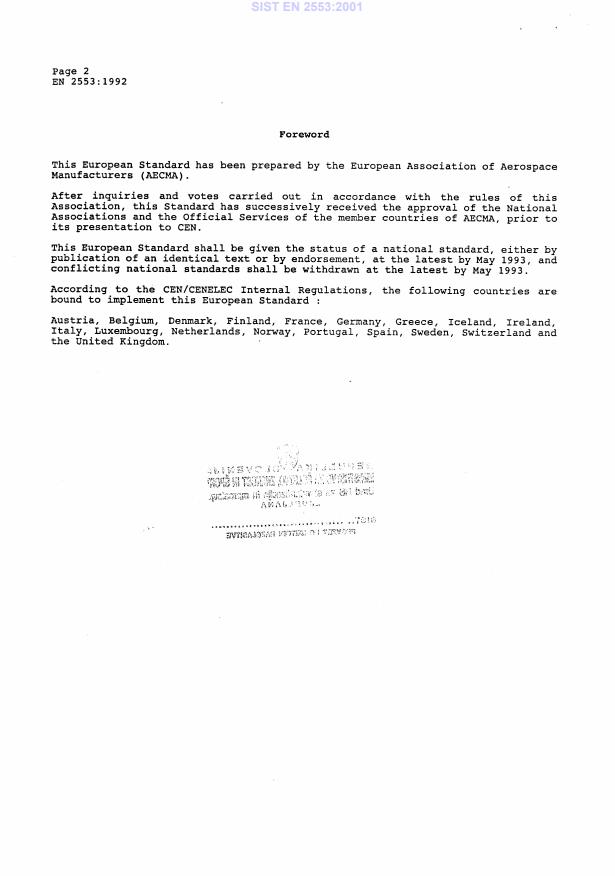 - Compliance and adoption: Notes the standard is a CEN publication and has national adoptions (for example, SIST EN 2553:2001 in Slovenia).