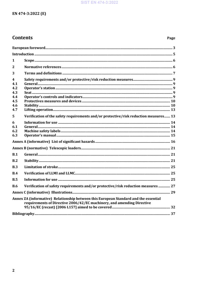 - Verification & information for use: Clause 5 defines verification methods; Clause 6 covers safety labels and the operator’s manual requirements. Annex A lists significant hazards; Annex ZA maps to EU Machinery Directive requirements.