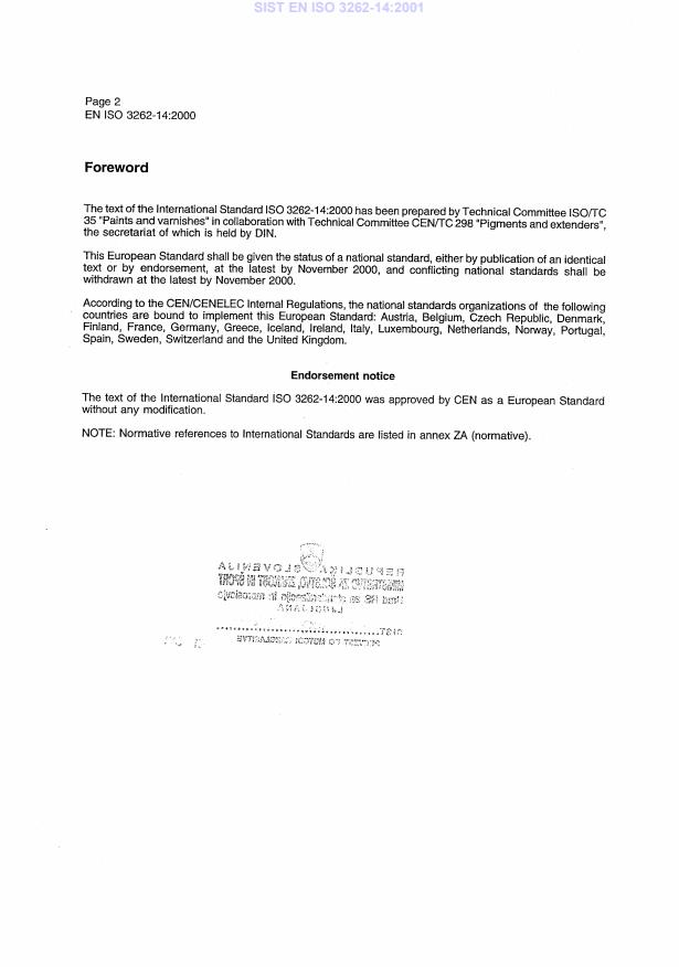 International Standard ISO 3262-14 was prepared by Technical Committee ISO/TC 35, Paints and varnishes,Sub-