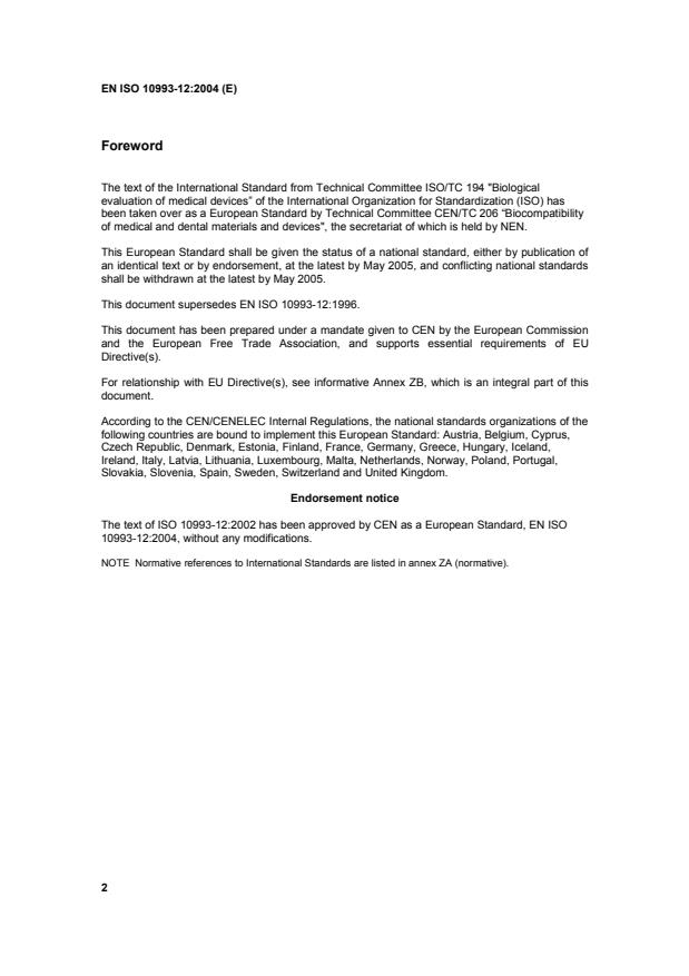 ICS 11.100 Supersedes EN ISO 10993-12:1996