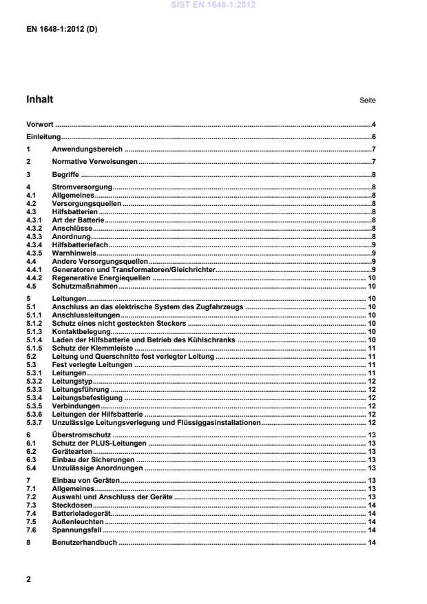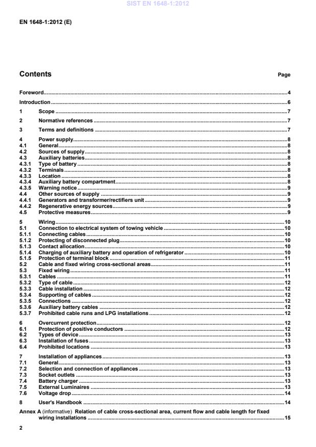 5 Requirements for 12 V direct current extra low voltage electrical installations for motor caravans are specified in EN 1648-2. According to the CEN/CENELEC Internal Regulations, the national standards organisations of the following countries are bound to implement this European Standard: Austria, Belgium, Bulgaria, Croatia, Cyprus, Czech Republic, Denmark, Estonia, Finland, Former Yugoslav Republic of Macedonia, France, Germany, Greece, Hungary, Iceland, Ireland, Italy, Latvia, Lithuania, Luxembourg, Malta, Netherlands, Norway, Poland, Portugal, Romania, Slovakia, Slovenia, Spain, Sweden, Switzerland, Turkey and the United Kingdom. SIST EN 1648-1:2012
