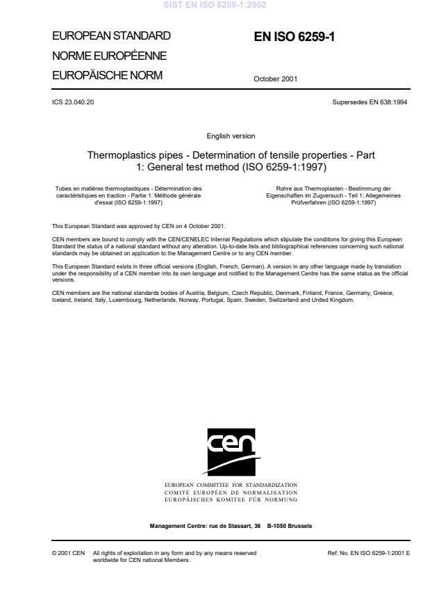 © 2001 CEN All rights of exploitation in any form and by any means reserved Ref. No. EN ISO 6259-1:2001 E