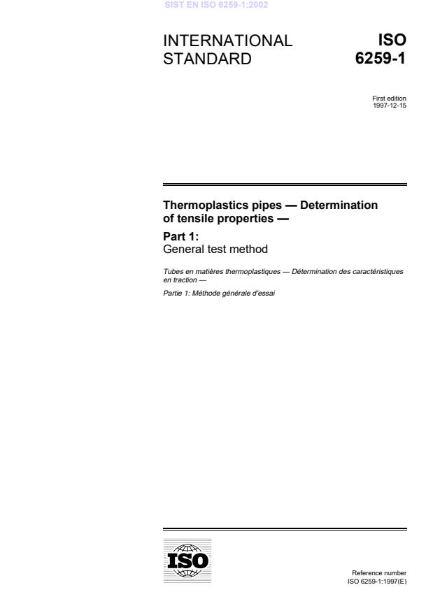 Thermoplastics pipes - Determination of tensile properties - Part 1: General test method (ISO 6259-1:1997)