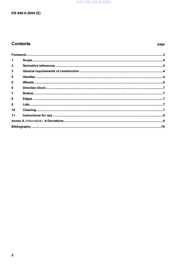EN 840-6:2004 is a standard published by the European Committee for Standardization (CEN). Its full title is "Mobile waste containers - Part 6: Safety and health requirements". This standard covers: This part 6 of the European Standard provides the most essential safety and health requirements for mobile waste containers, not including hazardous wastes containers.