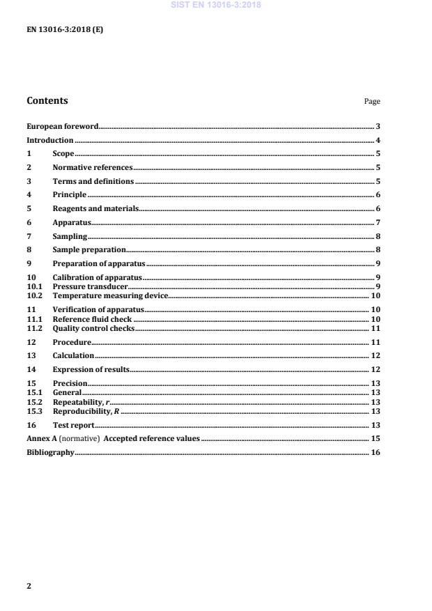 EN 13016-3:2018 is a standard published by the European Committee for Standardization (CEN). Its full title is "Liquid petroleum products - Vapour pressure - Part 3: Determination of vapour pressure and calculated dry vapour pressure equivalent (DVPE) (Triple Expansion Method)". This standard covers: This European Standard specifies a method for the determination of the vapour pressure, exerted in vacuo, by volatile, low viscosity petroleum products, components, ethanol blends up to 85 % (V/V), and feedstocks using a variable volume chamber. A dry vapour pressure equivalent (DVPE) is calculated from the vapour pressure. The conditions used in the test described in this standard are a vapour-to-liquid ratio of 4:1 and a test temperature of 37,8 °C. The equipment is not wetted with water during the test, and the method described is therefore suitable for testing samples with or without oxygenates; no account is taken of dissolved water in the sample. This procedure calculates the partial pressure of the air dissolved in the test portion during the triple expansion process. It is suitable for samples with a DVPE between 13,7 kPa and 98,3 kPa; vapour pressures outside this range can be measured but the precision has not been determined. This document is applicable to fuels containing oxygenated compounds up to the limits stated in the relevant Council Directive 85/536/EEC [6], and for ethanol-fuel blends up to 85 % (V/V) ethanol. NOTE For the purposes of this European Standard, the terms "% (m/m)" and "% (V/V)" are used to represent the mass and volume fractions respectively. WARNING - The use of this Standard can involve hazardous materials, operations and equipment. This Standard does not purport to address all of the safety problems associated with its use. It is the responsibility of users of this standard to take appropriate measures to ensure the safety and health of personnel prior to application of the standard, and fulfil statutory and regulatory requirements for this purpose.