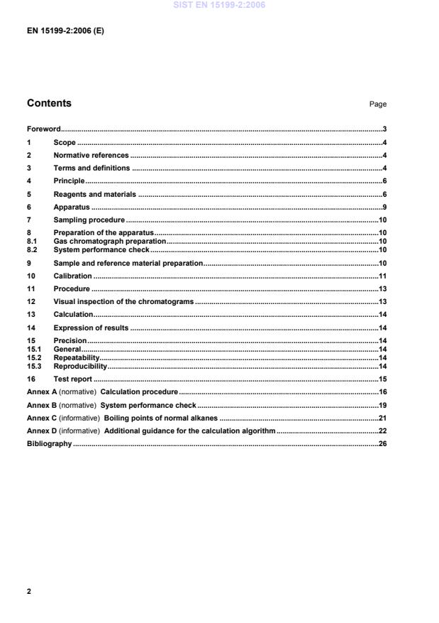 EN 15199-2:2006 is a standard published by the European Committee for Standardization (CEN). Its full title is "Petroleum products - Determination of boiling range distribution by gas chromatography method - Part 2: Heavy distillates and residual fuels". This standard covers: This European Standard specifies a method for the determination of the boiling range distribution of petroleum products by capillary gas chromatography using flame ionisation detection. The standard is applicable to materials having a vapour pressure low enough to permit sampling at ambient temperature, and which have a boiling range of at least 100 °C. The standard is applicable to materials with initial boiling points (IBP) above 100 °C and final boiling points (FBP) above 750 °C, for example, heavy distillate fuels and residuals. The method is not applicable to bituminous samples. The test method is not applicable for the analysis of petroleum or petroleum products containing low molecular weight components (for example naphthas, reformates, gasolines, diesel). Components containing hetero atoms (for example alcohols, ethers, acids, or esters) or residue are not to be analyzed by this test method. NOTE For the purposes of this European Standard, the terms "% (m/m)" and "% (V/V)" are used to represent respectively the mass fraction and the volume fraction. WARNING - The use of this European Standard may involve hazardous materials, operations and equipment. This European Standard does not purport to address all of the safety problems associated with its use. It is the responsibility of the user of this standard to establish appropriate safety and health practices and to determine the applicability of regulatory limitations prior to use.
