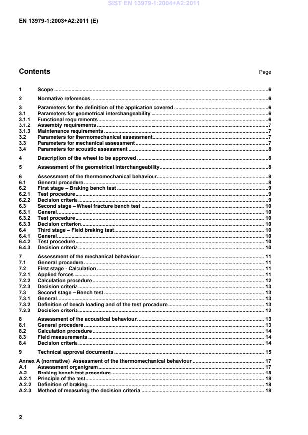 Assessment of the thermomechanical behaviour . 17 A.1 Assessment organigram . 17 A.2 Braking bench test procedure . 18 A.2.1 Principle of the test. 18 A.2.2 Definition of braking . 18 A.2.3 Method of measuring the decision criteria . 18 SIST EN 13979-1:2004+A2:2011