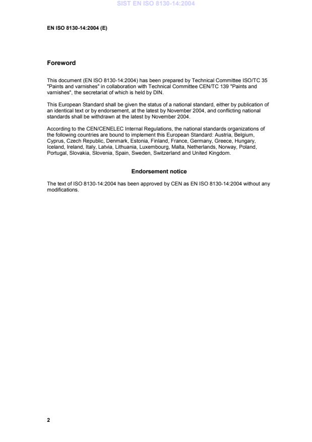 This document (EN ISO 8130-14:2004) has been prepared by Technical Committee ISO/TC 35