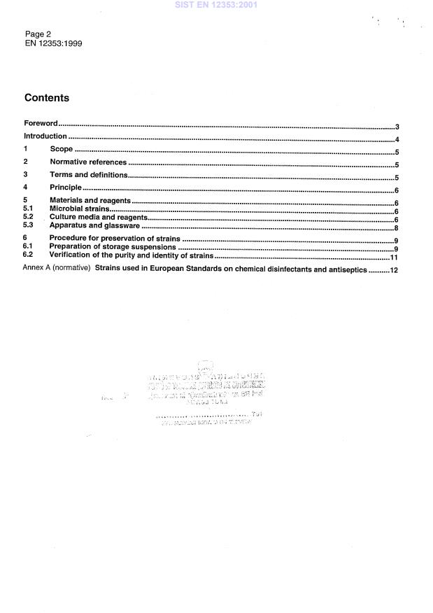 2003-01.Slovenski inštitut za standardizacijo. Razmnoževanje celote ali delov tega standarda ni dovoljeno.Chemische Desinfektionsmittel und Antiseptika - Aufbewahrung von Bakterien- und Pilzstämmen für die Prüfung der bakteriziden und fungiziden WirkungAntiseptiques et désinfectants chimiques - Conservation des souches microbiennes utilisées pour la détermination de l'activité bactéricide et fongicideChemical disinfectants and antiseptics - Preservation of microbial strains used for the determination of bactericidal and fungicidal activity71.100.35Kemikalije za dezinfekcijo v industriji in dom