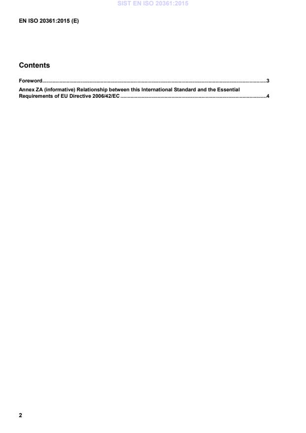 EN ISO 20361:2015 is associated with the following European legislation: EU Directives/Regulations: 2006/42/EC; Standardization Mandates: M/396. When a standard is cited in the Official Journal of the European Union, products manufactured in conformity with it benefit from a presumption of conformity with the essential requirements of the corresponding EU directive or regulation.