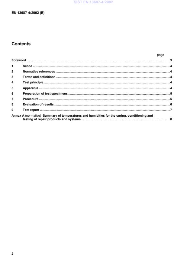 Summary of temperatures and humidities for the curing, conditioning andtesting of repair products and systems.8SIST EN 13687-4:2002