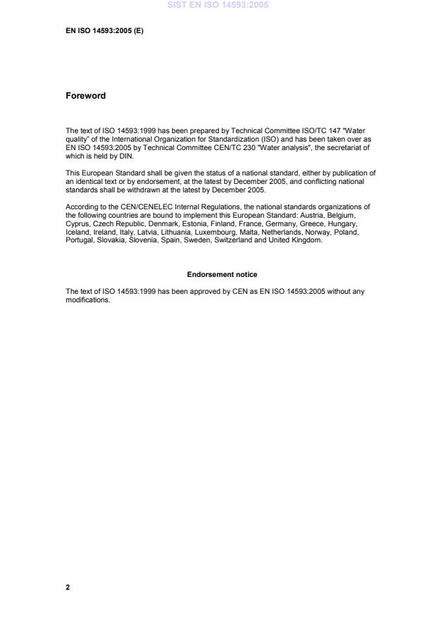 EN ISO 14593:2005 is classified under the following ICS (International Classification for Standards) categories: 13.060.70 - Examination of biological properties of water. The ICS classification helps identify the subject area and facilitates finding related standards.