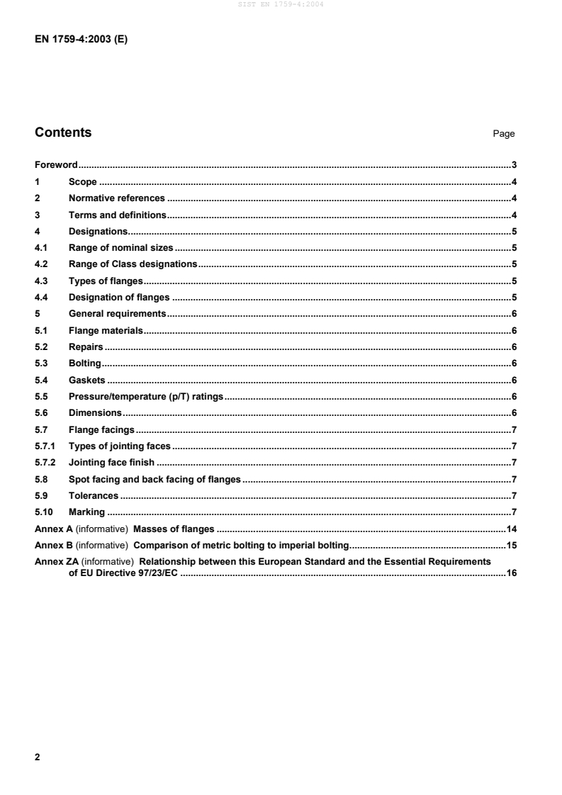 Relationship between this European Standard and the Essential Requirementsof EU Directive 97/23/EC.16SIST EN 1759-4:2004