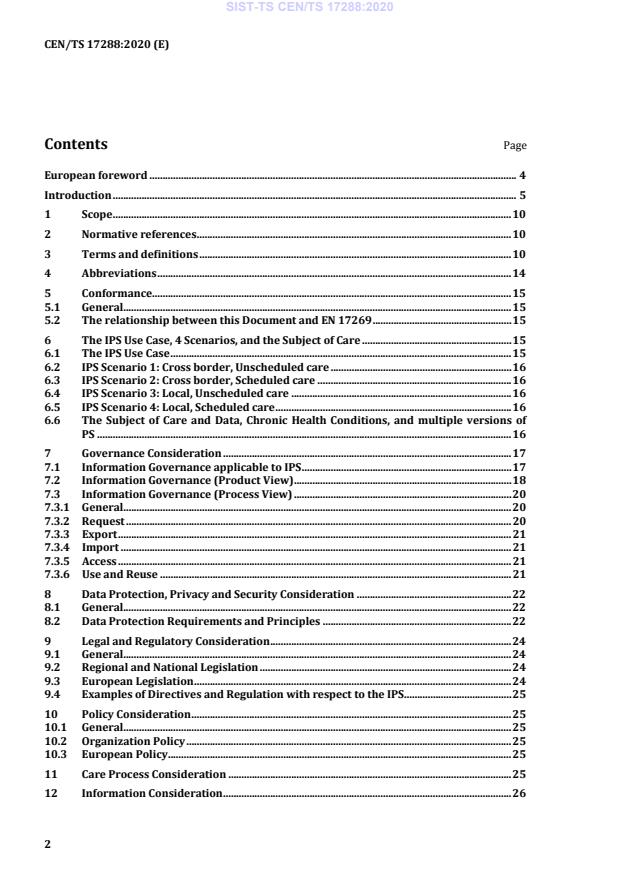 CEN/TS 17288:2020 - Health informatics - The International Patient Summary (IPS) - Guideline for European Implementation - is a European Technical Specification published by CEN in 2020. It provides practical, jurisdiction‑aware guidance to implement the International Patient Summary dataset within European healthcare systems. The TS contextualizes the global IPS (EN 17269) for EU legal, organisational and technical realities, with a strong focus on secure, interoperable cross‑border care and unscheduled care scenarios.