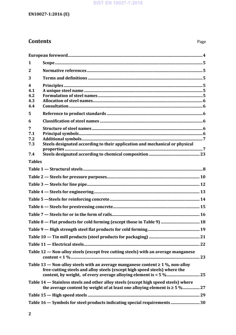 5 % . 27 Table 15 — High speed steels . 29 Table 16 — Symbols for steel products indicating special requirements . 30 SIST EN 10027-1:2016