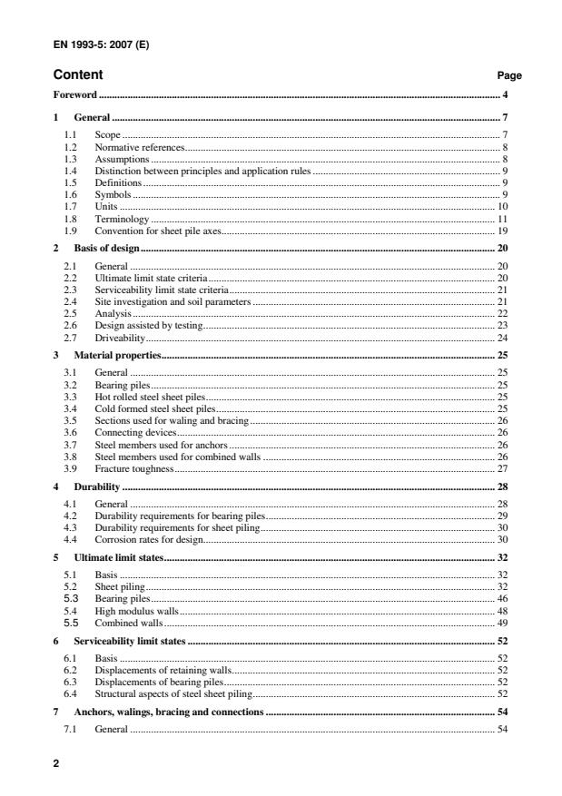 (2) In the following, specific provisions are given for the design of bearing piles and sheet piling to fulfil the safety and durability requirements for both serviceability and ultimate limit states.
