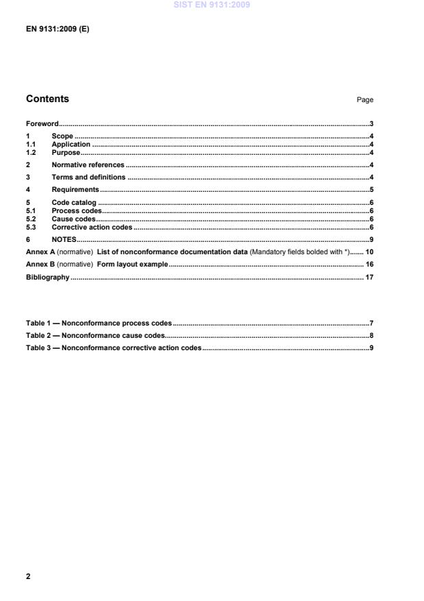 Table 1 — Nonconformance process codes .7Table 2 — Nonconformance cause codes.8Table 3 — Nonconformance corrective action codes .9