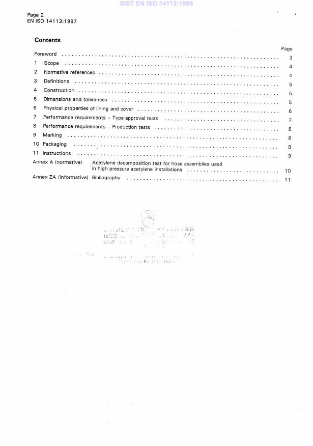 EN ISO 14113:1997 is a standard published by the European Committee for Standardization (CEN). Its full title is "Gas welding equipment - Rubber and plastic hoses assembled for compressed or liquefied gases up to a maximum design pressure of 450 bar (ISO 14113:1997)". This standard covers: This European Standard specifies requirements for rubber and plastics hoses in accordance with EN 1327 and hose assemblies for use with compressed or liquefied gases up to a maximum design pressure of 450 bar (45 MPa), within the ambiant temperature range -20°C to +60°C. Rubber hoses for welding, cutting and allied processes for use up to a maximum design pressure of 20 bar (2 MPa), or not exceeding 1,5 bar in the case of acetylene, are covered by EN 559.