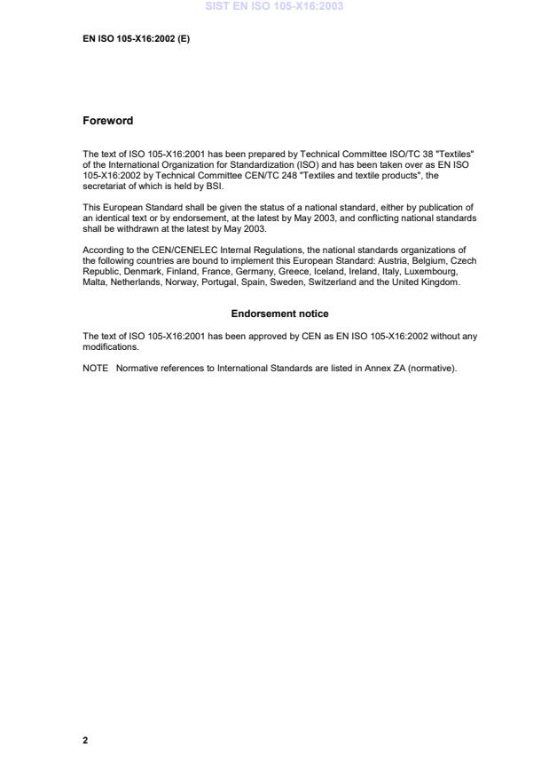 Normative references to International Standards are listed in Annex ZA (normative).SIST EN ISO 105-X16:2003