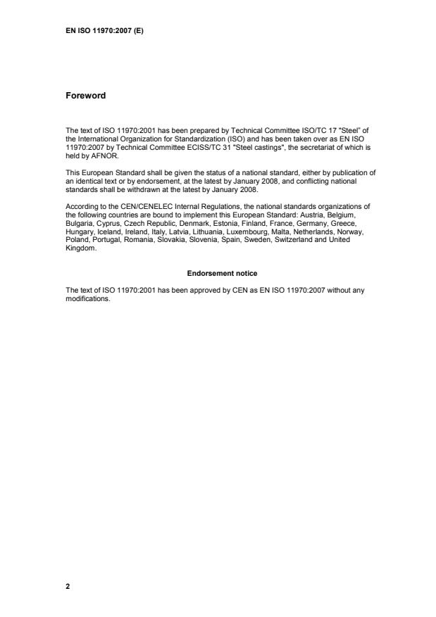 11970:2007 by Technical Committee ECISS/TC 31 "Steel castings", the secretariat of which is