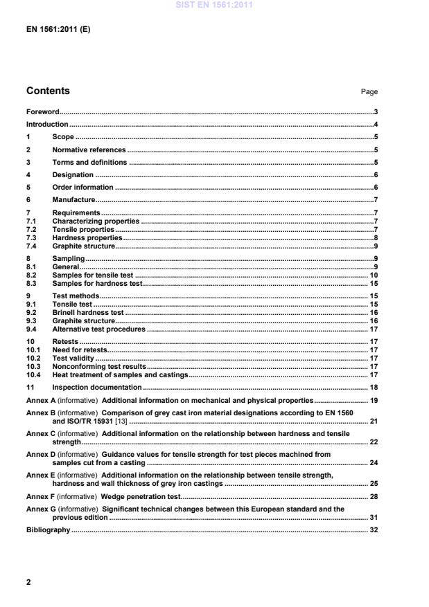 Significant technical changes between this European standard and the previous edition . 31Bibliography . 32 SIST EN 1561:2011
