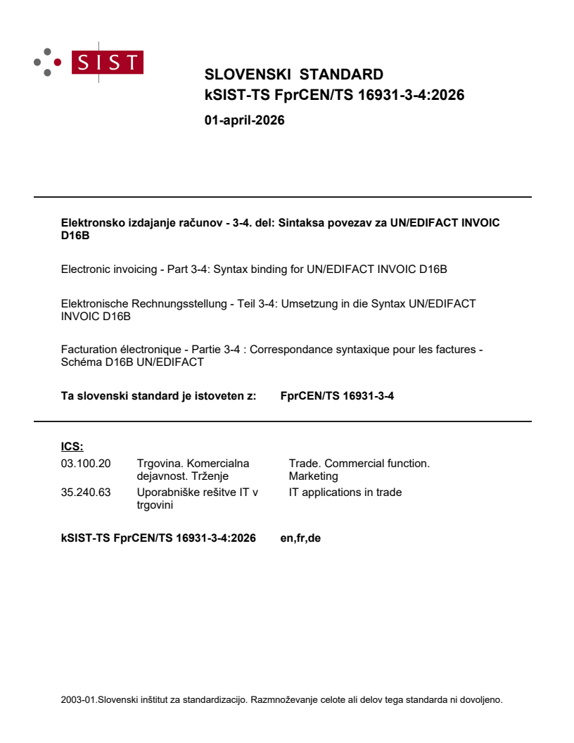 CEN/TS 16931-3-4:2020 - Electronic invoicing - Part 3-4: Syntax binding for UN/EDIFACT INVOIC D16B - Effective Date