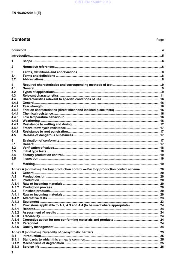 Durability of geosynthetic barriers . 25 B.1 Introduction . 25 B.1.1 Standards to which this annex is common . 25 B.1.2 Mechanisms of degradation . 25 B.1.3 Service life . 26 SIST EN 15382:2013