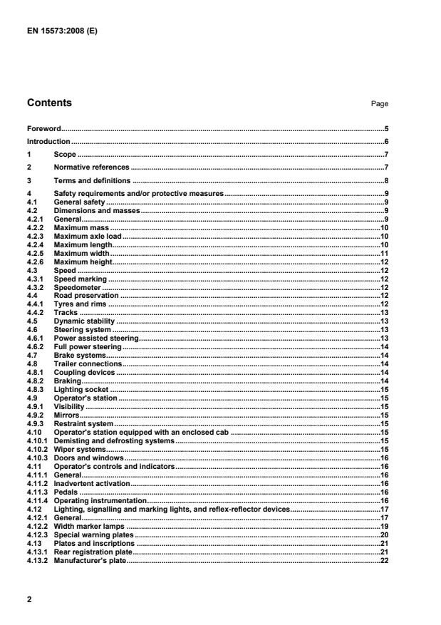 EN 15573:2008 is a standard published by the European Committee for Standardization (CEN). Its full title is "Earth-moving machinery - Design requirements for circulation on the road". This standard covers: This European Standard specifies the requirements for earth-moving machinery described in EN ISO 6165 [2], intended to travel on the road. This European Standard specifies the appropriate technical measures to eliminate or reduce risks arising from the significant hazards, hazardous situations and events during on road travel of earth-moving machinery. This European Standard does not apply to earth-moving machinery with a width exceeding 3 metres (see 4.2.5). This European Standard does not apply to earth-moving machinery on legs e.g. walking excavators. This European Standard does not cover the hazards relevant to non-riding and remote control earth-moving machinery. This European Standard is not applicable to earth-moving machines manufactured before the publication date of this European Standard by CEN.