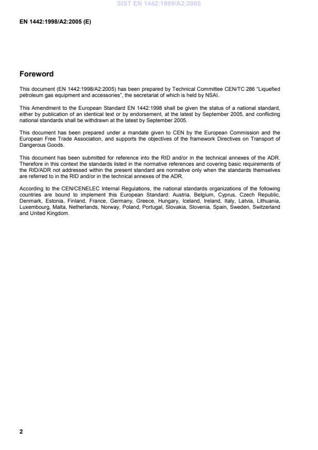 This amendment A2 modifies the European Standard EN 1442:1998; it was approved by CEN on 7 February 2005.