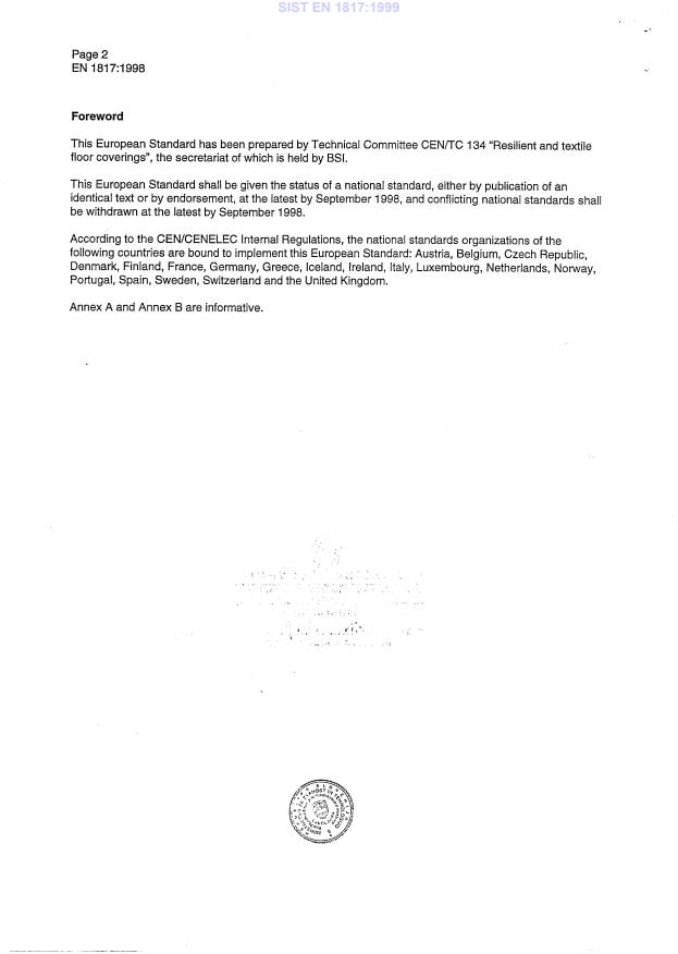 EN 1817:1998 is classified under the following ICS (International Classification for Standards) categories: 97.150 - Floor coverings. The ICS classification helps identify the subject area and facilitates finding related standards.