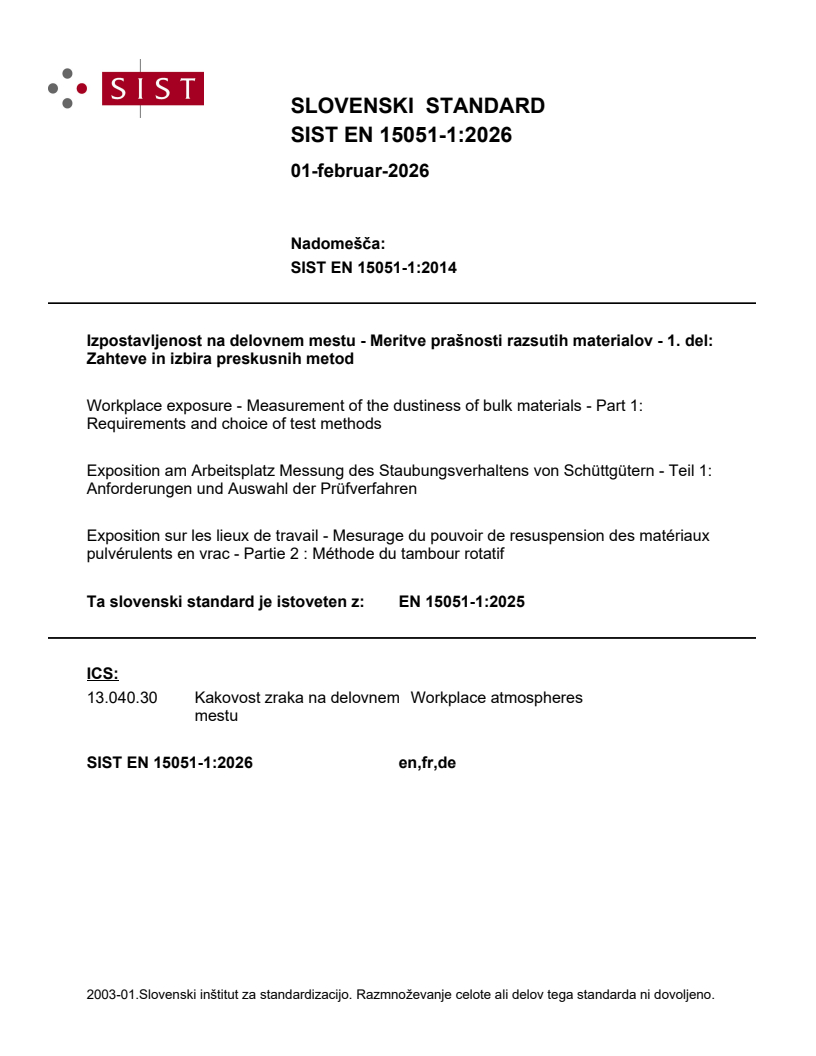 Ta slovenski standard je istoveten z: EN 15051-1:2025
