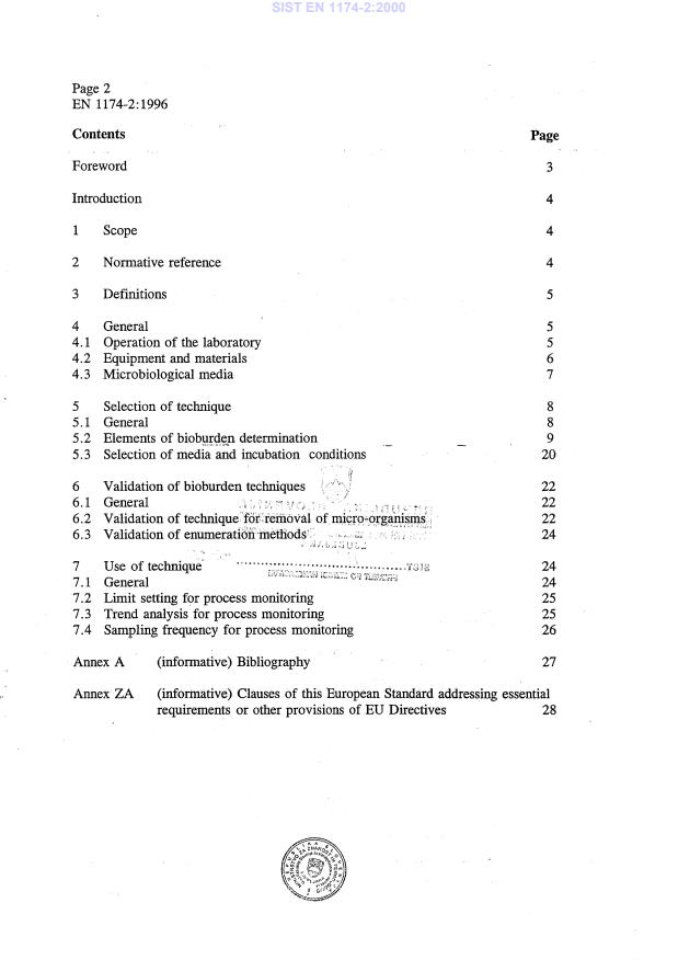 EN 1174-2:1996 is a standard published by the European Committee for Standardization (CEN). Its full title is "Sterilization of medical devices - Estimation of the population of micro-organisms on product - Part 2: Guidance". This standard covers: This Part of this European Standard provides guidance on the implementation of the requirements specified in EN 1174-1. It is aimed at providing a better understanding of EN 1174-1 as well as assisting in implementing its requirements. The guidance given is not intended to be exhaustive, but to highlight important aspects to which attention should be given. NOTE: This Part of EN 1174-1 is informative and does not contain requirements. This Part of this European Standard is not intended as a checklist for assessing compliance with EN 1174-1.