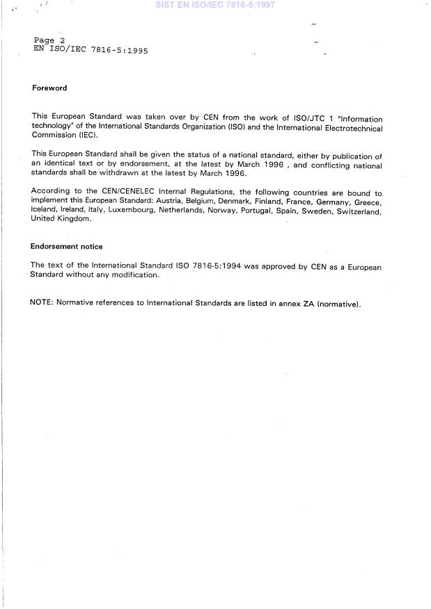 Ta slovenski standard je istoveten z: EN ISO/IEC 7816-5:1995