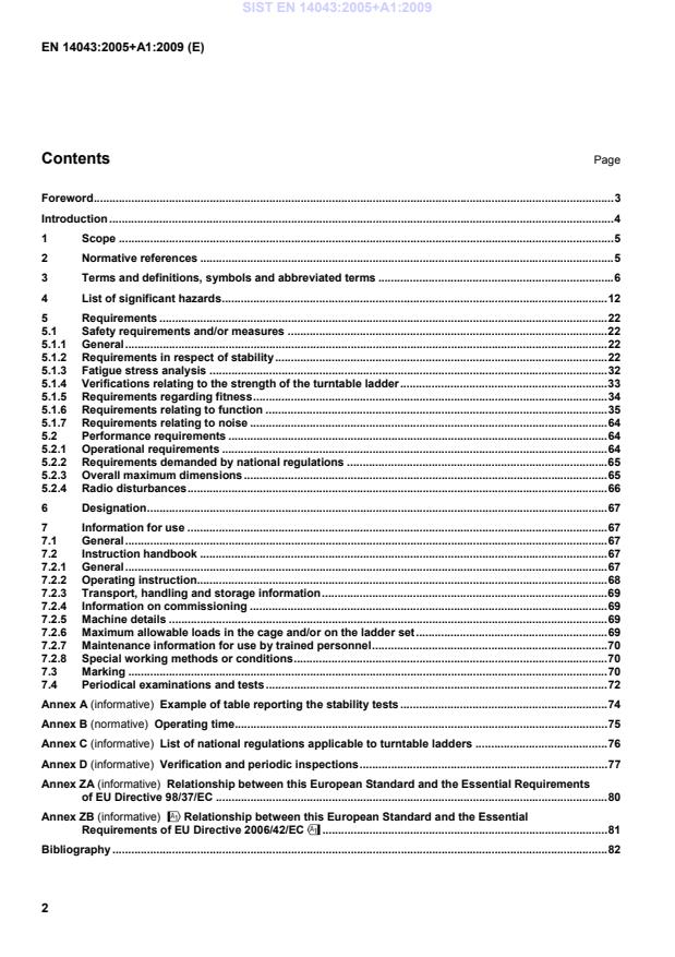 EN 14043:2005+A1:2009 is a standard published by the European Committee for Standardization (CEN). Its full title is "High rise aerial appliances for fire service use - Turntable ladders with combined movements - Safety and performance requirements and test methods". This standard covers: 1.1 This European Standard specifies the safety and performance requirements and test methods applicable to turntable ladders with combined movements of classes 18, 24 and 30, as defined in 3.13, under the control of fire-fighters and intended for fire fighting and rescuing people. Turntable ladder vehicles comprise a chassis, bodywork and a powered extending structure unit in the form of a ladder with or without a cage. Turntable ladder vehicles covered by this European Standard have a self-propelled chassis, the motor of which supplies power required for the operation of the ladder and permits all of the operational movements to be made simultaneously, with no restriction on the angle of the training movement. 1.2 This European Standard deals with the technical safety requirements to minimise the hazards listed in Clause 4 which can arise during the commissioning, the operational use, the routine checking and maintenance of turntable ladders when carried out in accordance with the specifications given by the manufacturer or his authorised representative. It also deals with performance requirements. 1.3 This European Standard deals with the use of turntable ladder vehicles within a temperature range from - 15 °C to + 35 °C and with a wind velocity on the ladder set <= 12,5 m/s. Additional measures can be necessary for use outside this range (to be negotiated between the manufacturer and the user). NOTE Special designs for use under special climatic conditions are arranged between the manufacturer and the purchaser. 1.4 This European Standard does not deal with the hazards of the standard automotive chassis or due to use as a road vehicle. 1.5 This European Standard is not applicable to turntable ladder vehicles with combined movements which are manufactured before the date of publication of this European Standard by CEN.