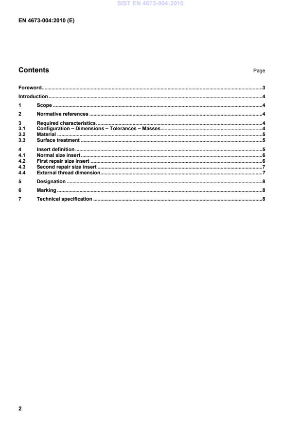 For detailed dimensional tables, repair codes and marking examples refer to the full EN 4673-004:2010 document and the companion EN 4673 parts.