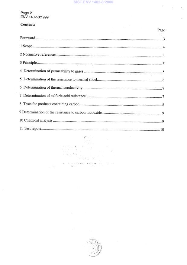 ENV 1402-8:1999 is a standardization document published by the European Committee for Standardization (CEN). Its full title is "Unshaped refractory products - Part 8: Determination of complementary properties". This standard covers: This European Prestandard describes methods for determination of the properties of unshaped refractory materials from test pieces prepared and stored in accordance with prENV 1402-5 1). The methods complement those described in ENV 1402-6. The methods have been adapted from standards for shaped refractory products to make them applicable to dense and insulating castables, plastic materials and ramming mixes as defined in ENV 1402-1, before and after firing.