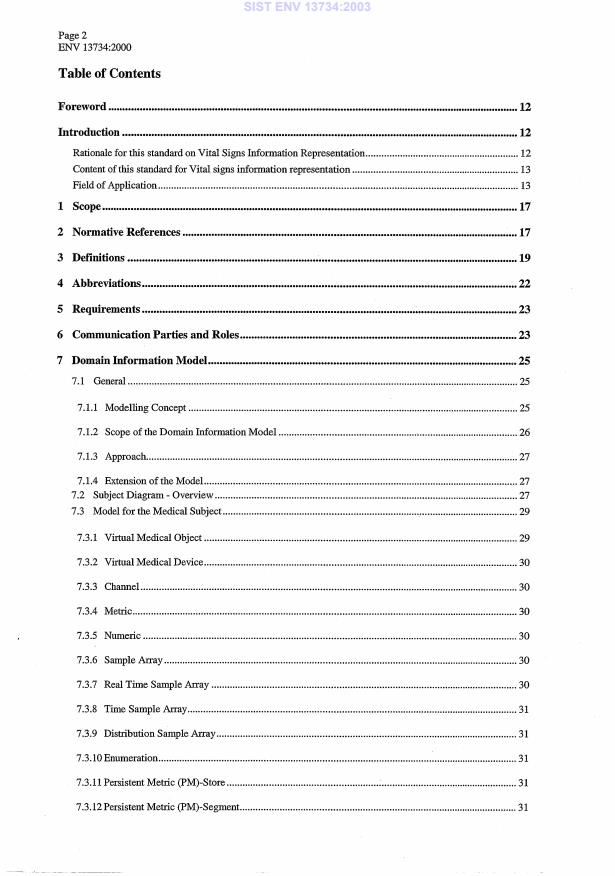 ENV 13734:2000 is a standardization document published by the European Committee for Standardization (CEN). Its full title is "Health informatics - Vital signs information representation". This standard covers: This standard addresses the definition and structuring of information that is communicated or referred to in communication between application entities. Within the scope of this standard is : - the interchange of Vital Signs Information between individual devices and between devices and the departmental processing system within the acute care setting; and, - data acquisition, archival and the exchange of archived data on storage media or via networks, e.g. in the electrophysiology sleep laboratory setting.