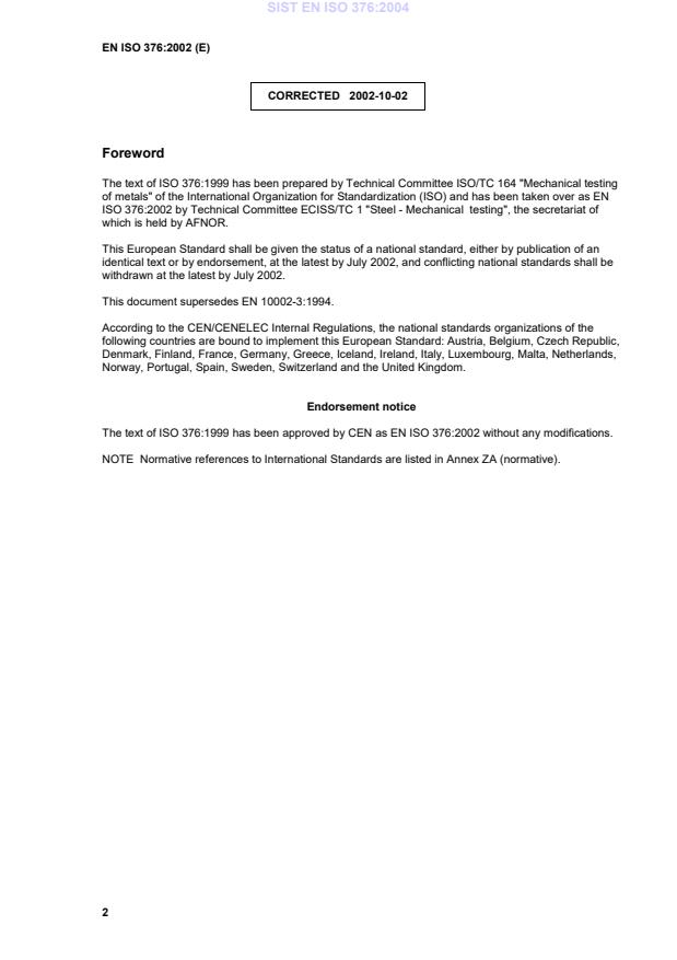 The text of ISO 376:1999 has been prepared by Technical Committee ISO/TC 164 "Mechanical testing