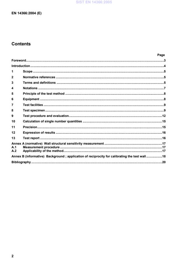 Background ; application of reciprocity for calibrating the test wall.18 Bibliography.20 SIST EN 14366:2005