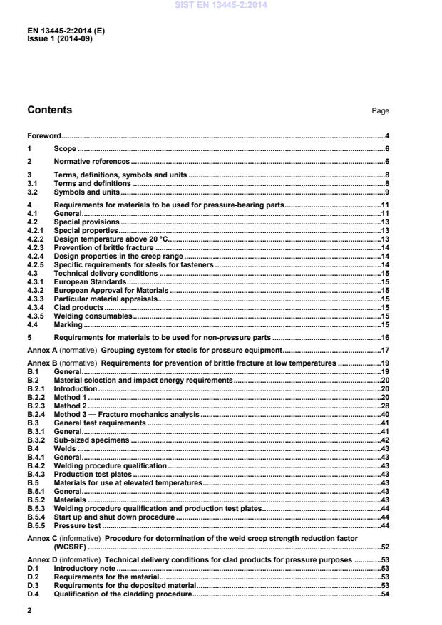 This Part of this European Standard specifies the requirements for materials (including clad materials) for unfired pressure vessels and supports which are covered by EN 13445-1:2014 and manufactured from metallic materials; it is currently limited to steels with sufficient ductility but it is, for components operating in the creep range, also limited to sufficiently creep ductile materials .