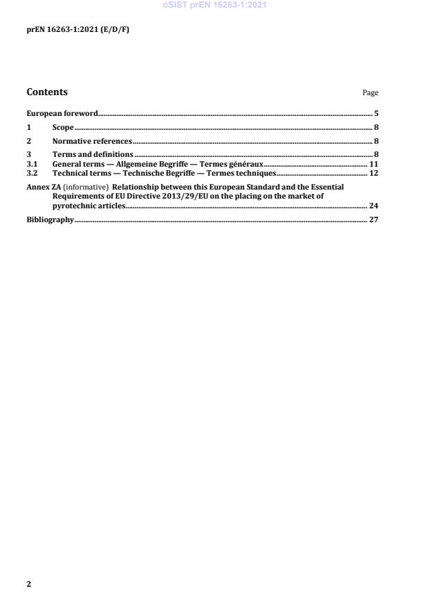 prEN 16263-1 is a draft published by the European Committee for Standardization (CEN). Its full title is "Pyrotechnic articles - Other pyrotechnic articles - Part 1: Terminology". This standard covers: This document defines various terms relating to the design, construction, performances, labelling and testing of other pyrotechnic articles as defined by Directive 2013/29/EU on the placing on the market of pyrotechnic articles (except pyrotechnic articles for vehicles, cartridges for powder actuated tools and ignition devices).