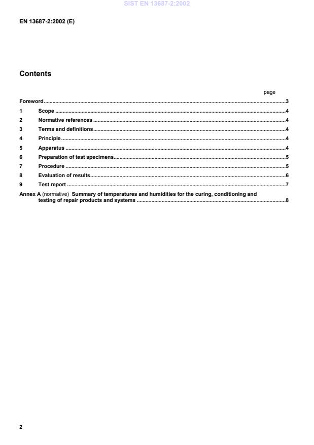 Summary of temperatures and humidities for the curing, conditioning andtesting of repair products and systems.8SIST EN 13687-2:2002