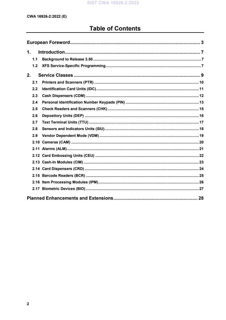 Keywords: CWA 16926-2, XFS 3.50, Service Class Definition, programmer's reference, financial services interfaces, ATM peripherals, multi-vendor interface.