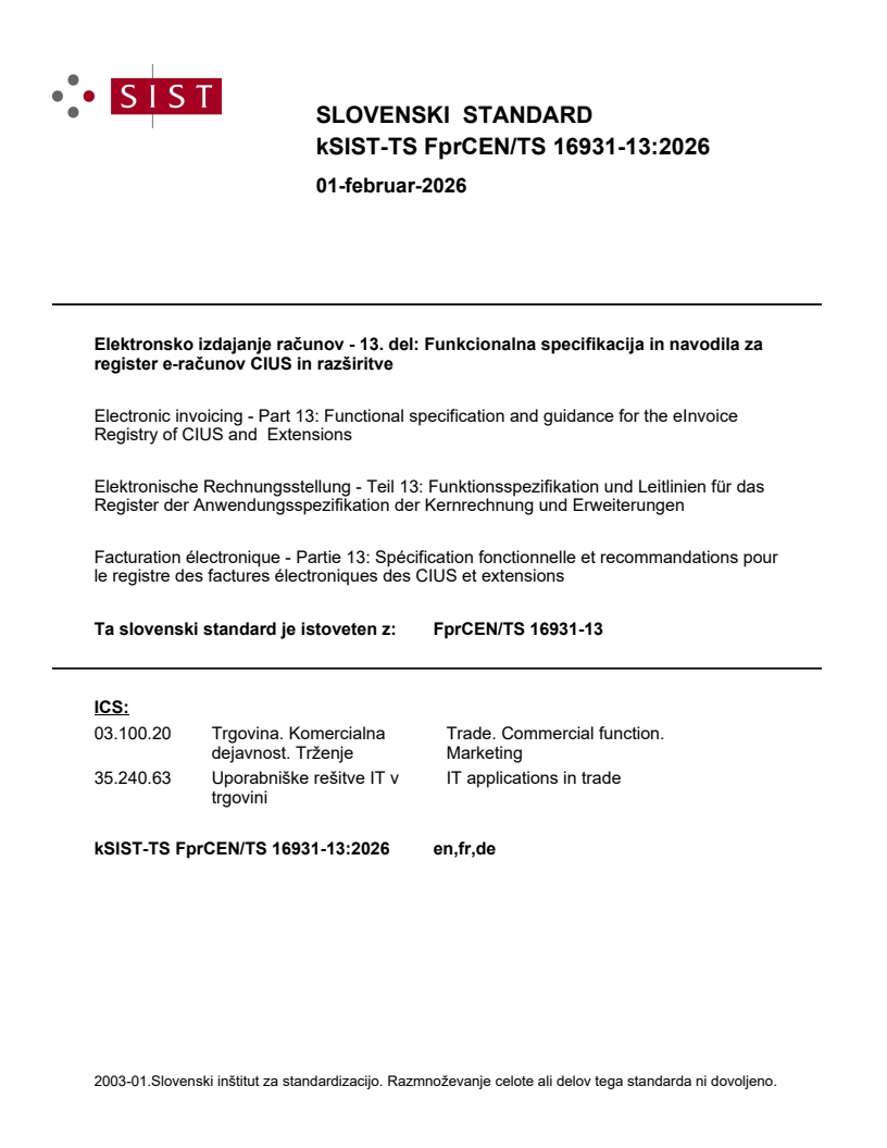 Ta slovenski standard je istoveten z: FprCEN/TS 16931-13
