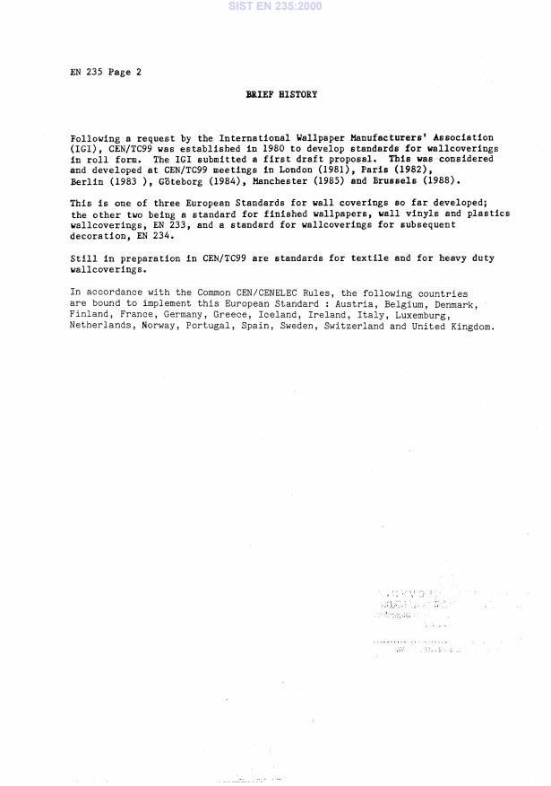 EN 235:1989 is a standard published by the European Committee for Standardization (CEN). Its full title is "Wallcoverings in roll form - Vocabulary and symbols". This standard covers: Mutual understanding and communication. Interface. Variety control. Rationalization. Interchangeability. Consumer protection.