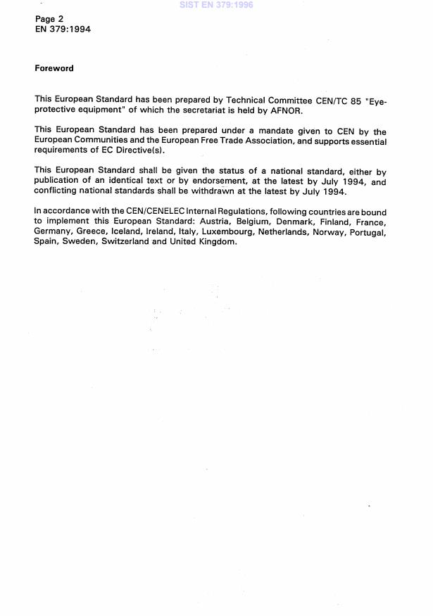 EN 379:1994 is associated with the following European legislation: EU Directives/Regulations: 89/686/EEC; Standardization Mandates: M/BC/CEN/88/5. When a standard is cited in the Official Journal of the European Union, products manufactured in conformity with it benefit from a presumption of conformity with the essential requirements of the corresponding EU directive or regulation.
