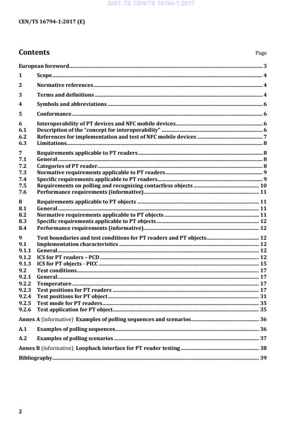 Ta tehnična specifikacija predstavlja 2. izdajo standarda CEN/TS 16794-1. Določa tehnične zahteve, ki jih morajo izpolnjevati brezkontaktne naprave javnega prometa (PT), da jim je omogočeno skupno delovanje s pomočjo brezkontaktnega komunikacijskega protokola standarda ISO/IEC 14443.