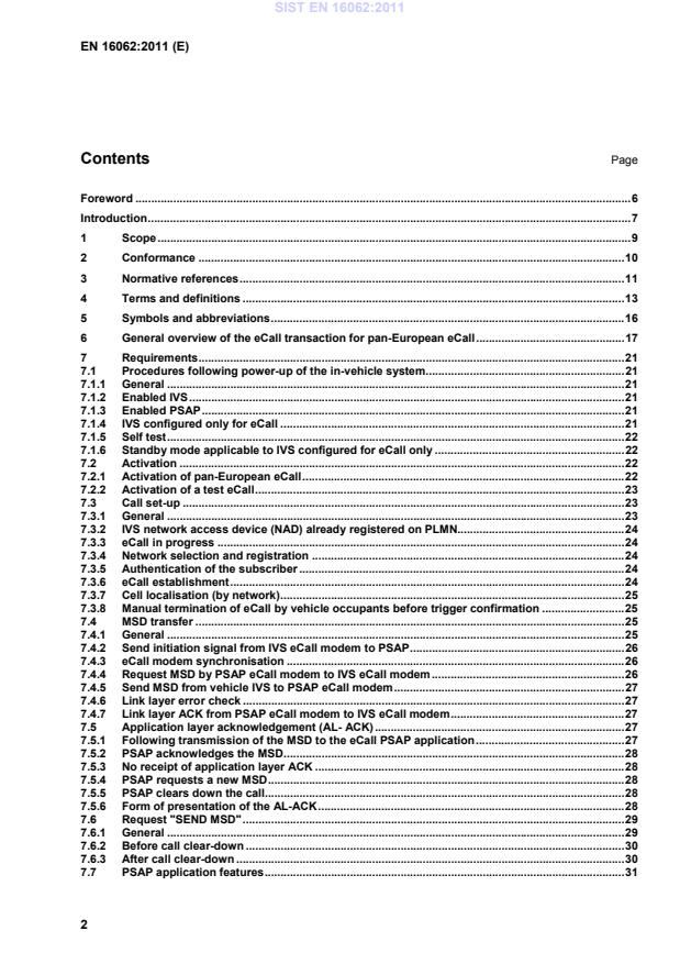 Test system strategies . 65C.1 General . 65C.2 Vehicle and PSAP equipment life cycle . 65C.3 Laboratory environment . 66C.4 OEM or third party test systems . 66Bibliography . 68 SIST EN 16062:2011