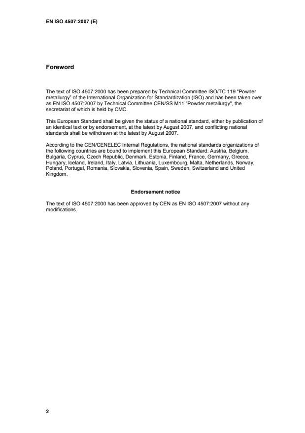 as EN ISO 4507:2007 by Technical Committee CEN/SS M11 "Powder metallurgy", the