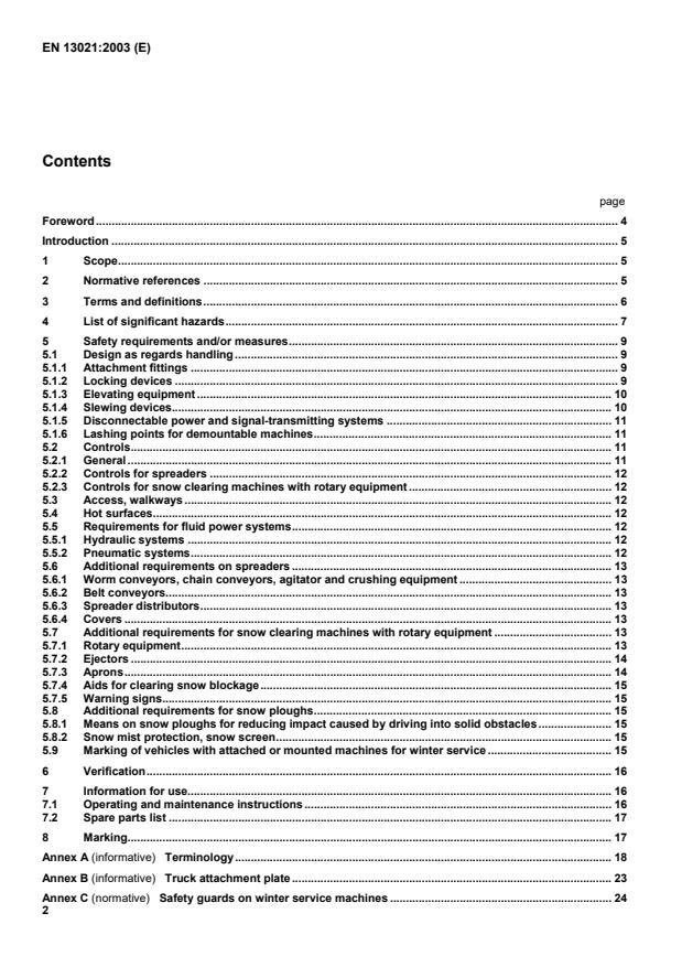 EN 13021:2003 is a standard published by the European Committee for Standardization (CEN). Its full title is "Winter service machines - Safety requirements". This standard covers: This European Standard applies to winter service machines which are defined in clause 3. This European standard deals with all significant hazards relevant to winter service machines when they are used as intended and under conditions foreseen by the manufacturer. This European standard specifies the appropriate technical measures to eliminate or reduce risks arising from the significant hazards.